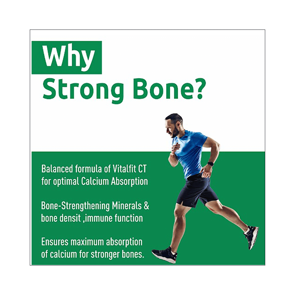 In Vitamin & mineral deficiencyVitalfit CT Softgel Capsule is a calcium supplement that helps in the treatment of calcium deficiency. It improves the level of vitamin D in your blood which in turn helps in absorption of more calcium from your intestine. Vitalfit CT Softgel Capsule will help to keep your bones strong and healthy and reduce the risk of any bone disorders like osteoporosis.