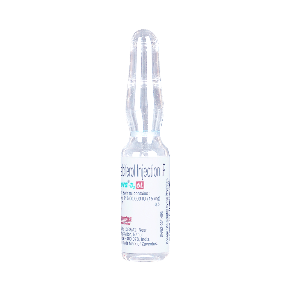 Vitanova-D3 6L Injection helps your body absorb calcium, which is important for maintaining strong bones. It is prescribed when your diet alone does not provide enough vitamin D. It may be used to treat certain bone conditions, such as thinning of the bones (osteoporosis). Vitanova-D3 6L Injection is generally given under the supervision of a doctor or a nurse and should not be self-administered. The doctor will decide the dose and duration of the treatment. If you are using it to treat osteoporosis, you may also be prescribed other medicines. This medicine may be only a part of a complete treatment program that includes changing your diet and taking calcium and vitamin supplements. Ask a doctor or dietitian about the foods you should eat to get enough calcium and vitamin D.There is limited data on the side effects of Vitanova-D3 6L Injection. However, some may experience mild injection site reactions like redness and swelling. Let your doctor know if you experience any symptoms while taking the medicine. They can suggest ways to treat or manage the side effects.Before receiving this medicine, tell your doctor if you have high calcium levels in your blood or if you have any preexisting medical conditions. Let your doctor know about all the other medicines you are taking to make sure it is safe for you. Pregnant and breastfeeding women should ask a doctor before taking Vitanova-D3 6L Injection to make sure it is safe for them.