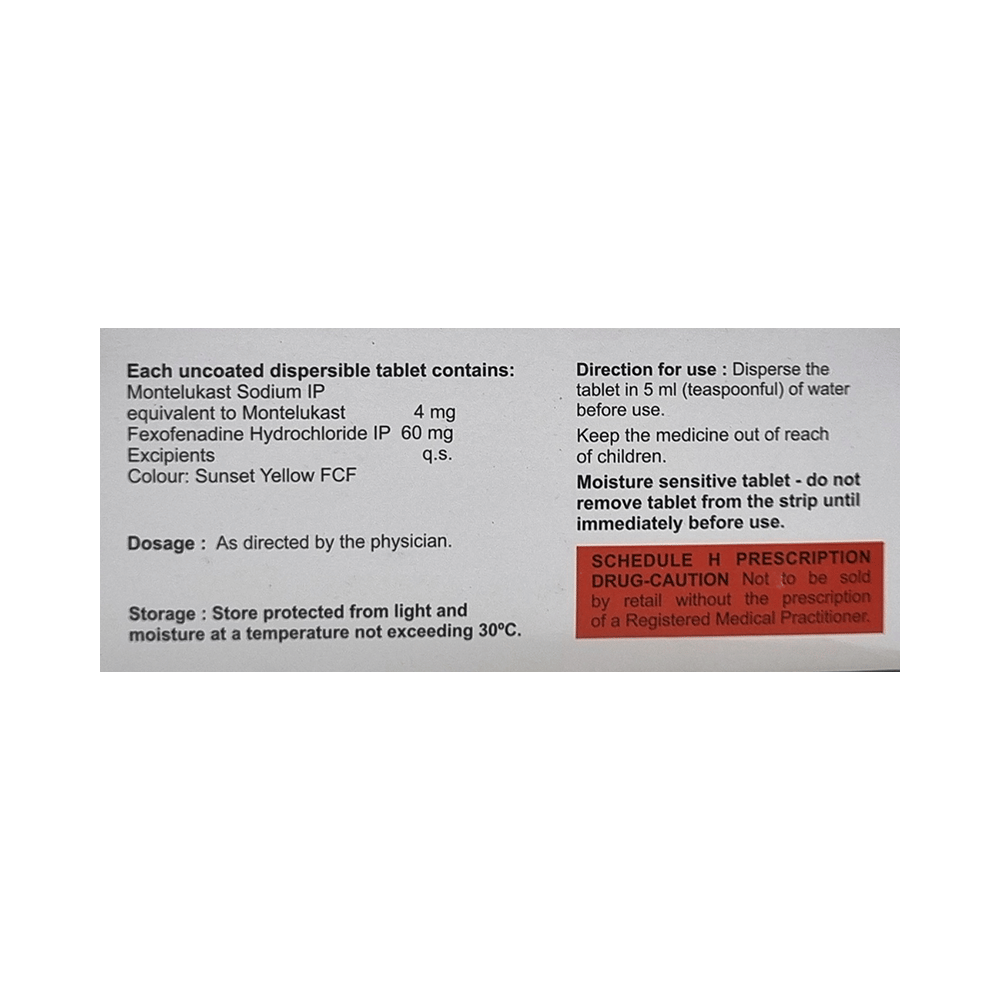 Salt Composition: Montelukast (4mg) + Fexofenadine (60mg)