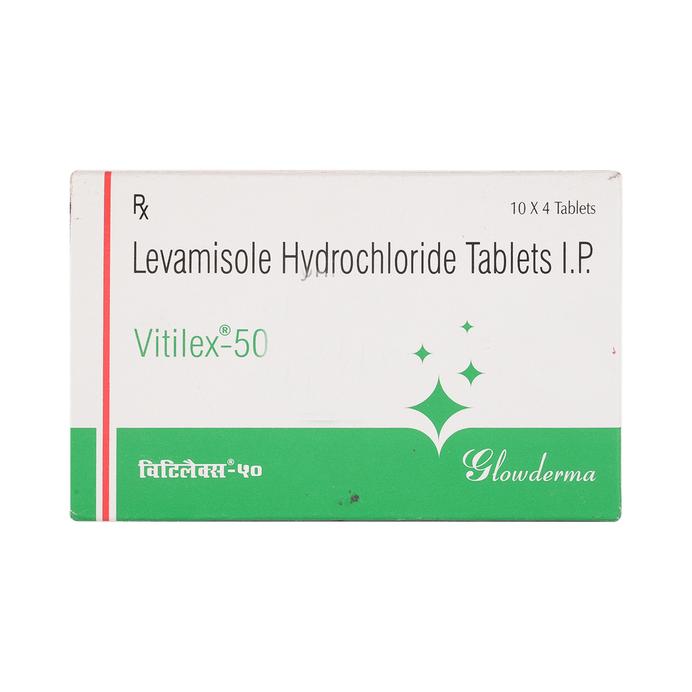 Vitilex 50mg Tablet is an effective antiparasitic and an immunoregulatory agent. As an antiparasite, it works by paralyzing the worms present in the intestines. This causes the worms to die, followed by the fast removal of these dead worms through stools. As an immunoregulator, it promotes activation of white blood cells (WBCs) and helps in restoring the normal function of the immune system.