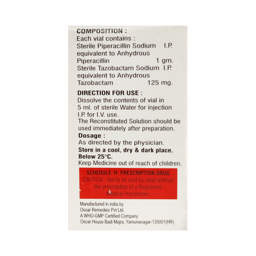 Salt Composition: Piperacillin (1000mg) + Tazobactum (125mg)