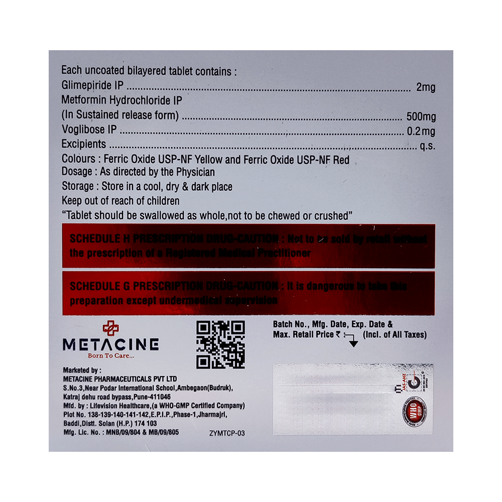 Salt Composition: Glimepiride (2mg) + Metformin (500mg) + Voglibose (0.2mg)