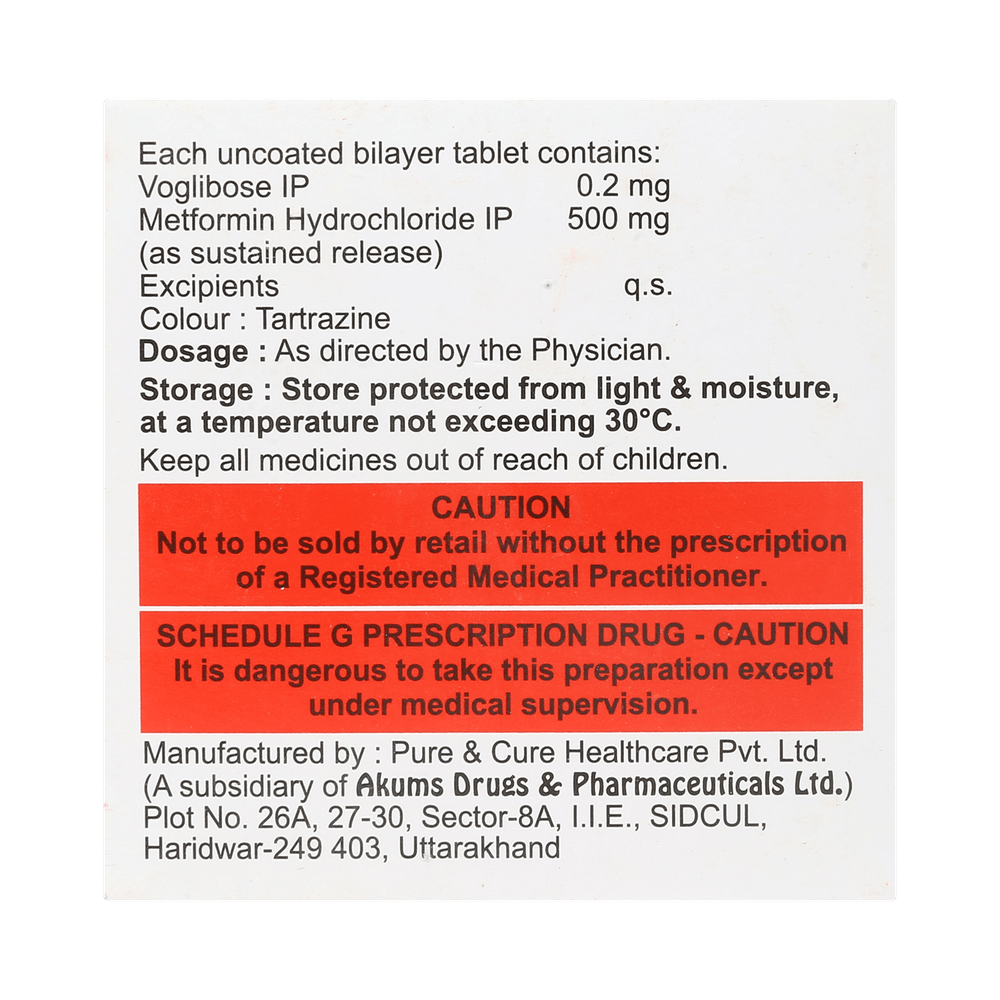 Salt Composition: Metformin (500mg) + Voglibose (0.2mg)
