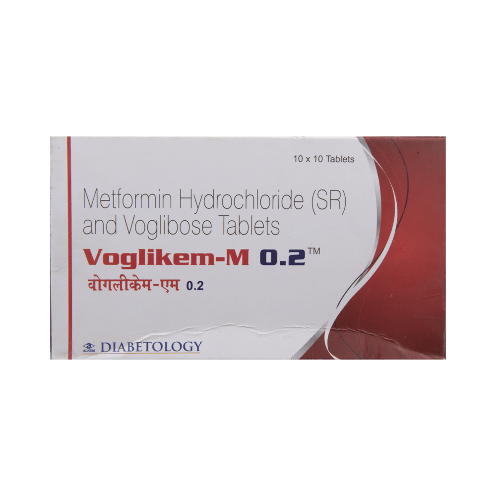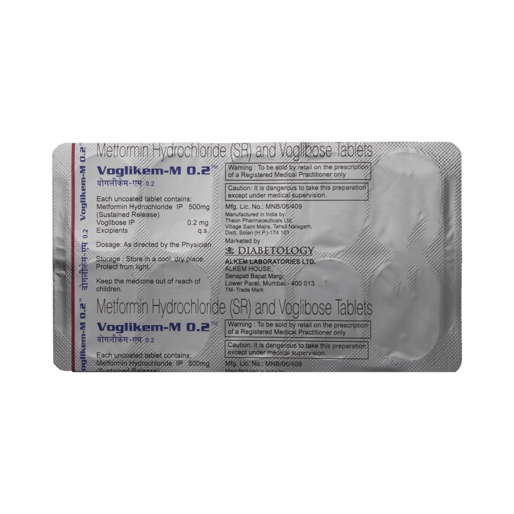VogliKEM-M 0.2 Tablet SR belongs to a category of medicines known as anti-diabetic drugs. It is a combination of medicines used to treat type 2 diabetes mellitus in adults. It helps control blood sugar levels in people with diabetes. VogliKEM-M 0.2 Tablet SR should be taken with food. Take it regularly at the same time each day to get the most benefit. Your doctor will decide what dose is best for you and this may change from time to time according to how it is working according to your blood sugar levels.Keep taking this medicine, even if you feel well or your blood sugar levels are controlled. If you stop it without consulting your doctor, your blood sugar levels could rise and put you at risk of kidney damage, blindness, nerve problems and loss of limbs. Remember that it is only part of a treatment program that should also include a healthy diet, regular exercise, and weight reduction as advised by your doctor. Your lifestyle plays a big part in controlling diabetes.This medicine may cause side effects like nausea, taste change, loss of appetite, flatulence, stomach pain, diarrhea, and skin rash. However, these are temporary and usually subside on their own. If these do not resolve or worry you, please consult your doctor. Your doctor might suggest ways of dealing with your side effects or treating them if they are bothersome.You should not take it if you have type 1 diabetes mellitus, if you have diabetic ketoacidosis (high levels of acid in your blood), or if you have severe kidney or liver disease. Before taking this medicine, tell your doctor if you have ever had heart disease. It may not be suitable. Pregnant or breastfeeding women should also consult their doctor before taking it. Your blood sugar levels should be checked regularly and your doctor may also advise blood tests to monitor your blood cell counts and liver function.