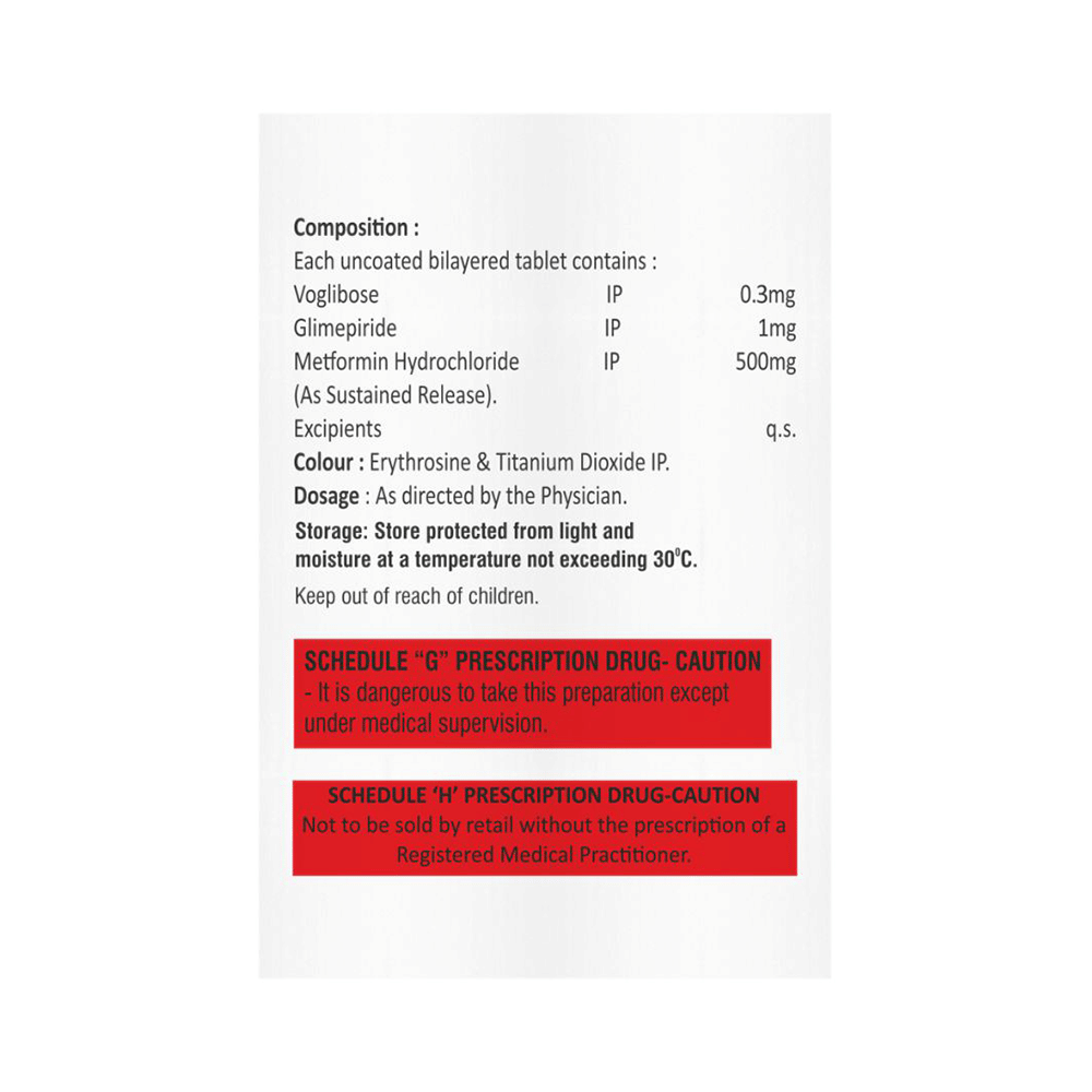 Salt Composition: Glimepiride (1mg) + Metformin (500mg) + Voglibose (0.3mg)