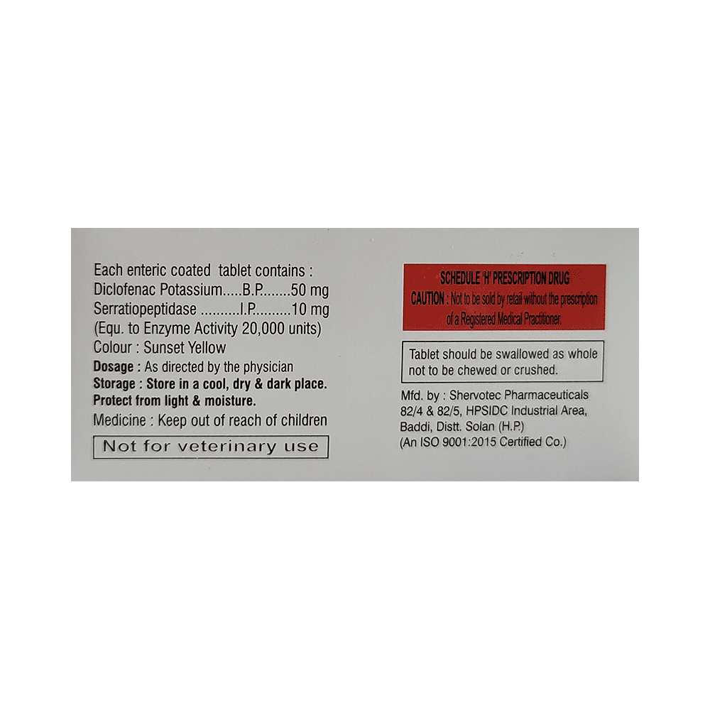 Salt Composition: Diclofenac (50mg) + Serratiopeptidase (10mg)