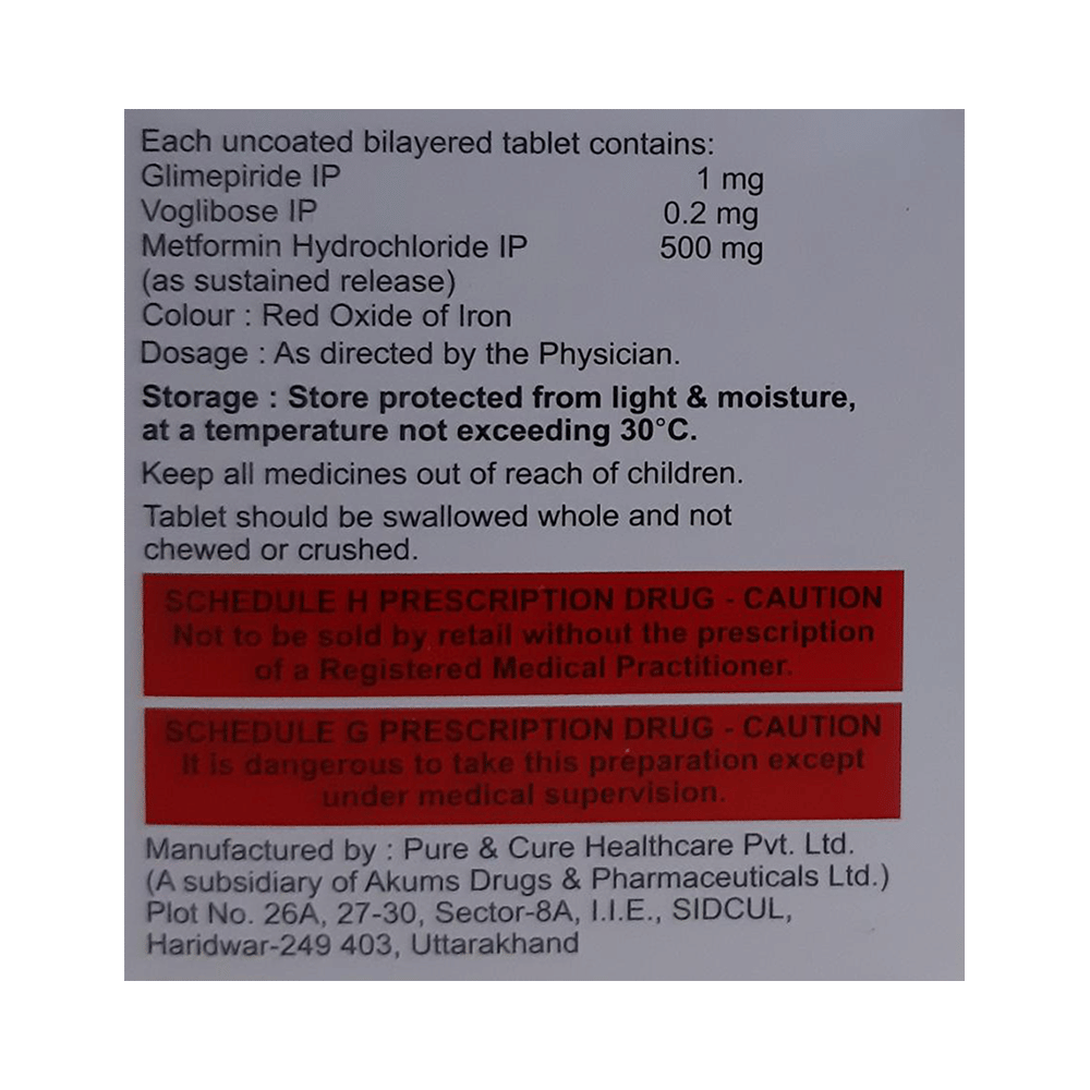 Salt Composition: Glimepiride (1mg) + Metformin (500mg) + Voglibose (0.2mg)