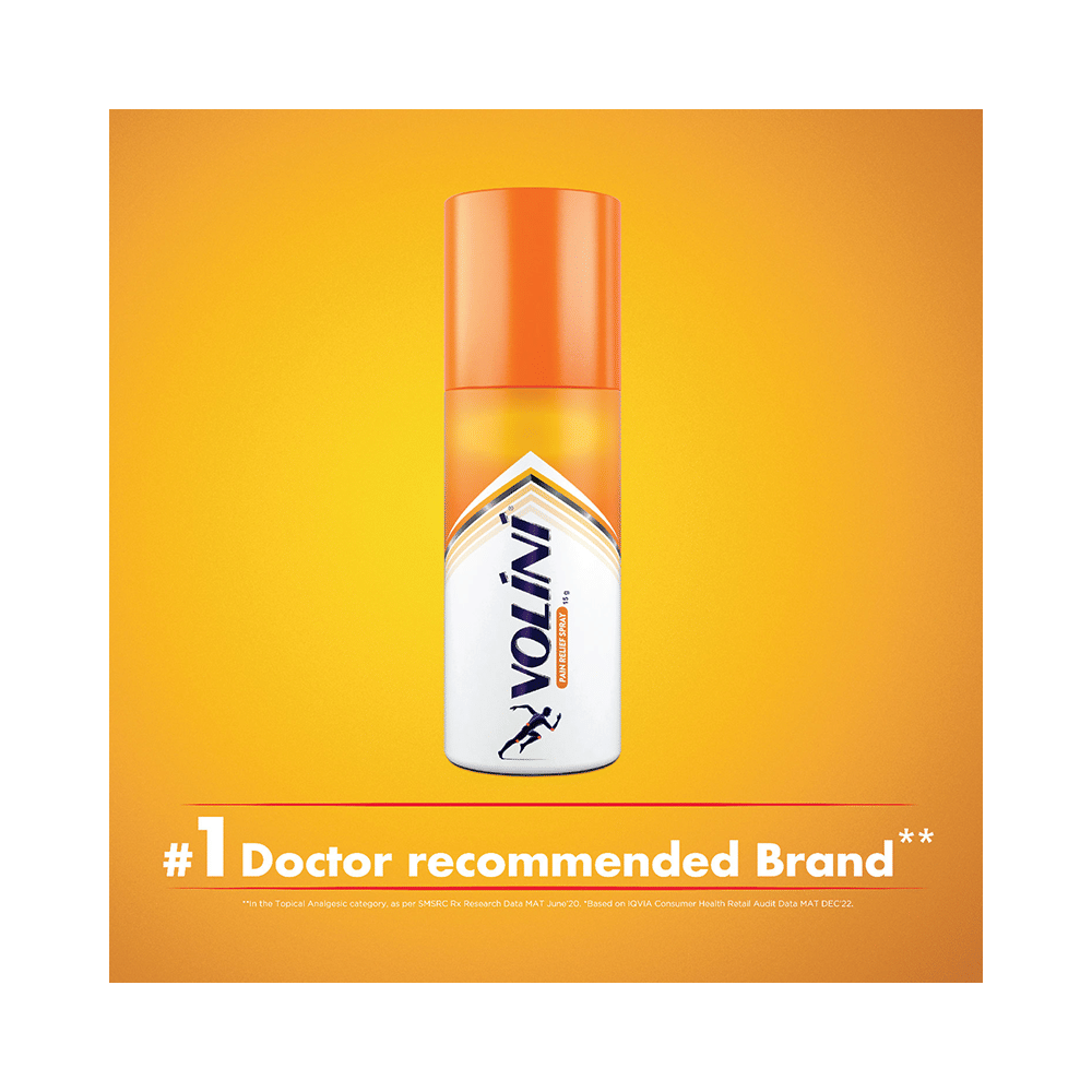 Volini Spray Spray for Sprain, Muscle and Joint Pain Relief | Quick Action | Long-Lasting Relief | Bone, Joint & Muscle Care is a pain relieving medicine applied topically to relieve pain. It is used to treat pain and inflammation in conditions like rheumatoid arthritis, ankylosing spondylitis, and osteoarthritis. It is also used to relieve muscle pain, back pain, and other inflammatory conditions. Volini Spray Spray for Sprain, Muscle and Joint Pain Relief | Quick Action | Long-Lasting Relief | Bone, Joint & Muscle Care is only meant for external use and should be used strictly as advised by your doctor. Rub a thin layer of the medicine into the affected areas with clean and dry hands. Avoid getting in contact with your eyes, nose, or mouth and avoid applying it on wounded or damaged skin. In case of accidental contact with these areas, you should rinse it with plenty of cold water.Use of this medicine may cause few common side effects such as burning or stinging sensation, irritation, itching, and redness at the site of application in some people. Usually, the side effects will slowly go away as your body gets used to it. If they get worse or do not go away, you should let your doctor know.Although medicines used on the skin are not normally affected by other medicines you should let your doctor know if you are taking any other medicine to be safe. You should also let your doctor know if you have any medical conditions or disorders to make sure it is safe. Ask your doctor for advice if you are pregnant or breastfeeding.