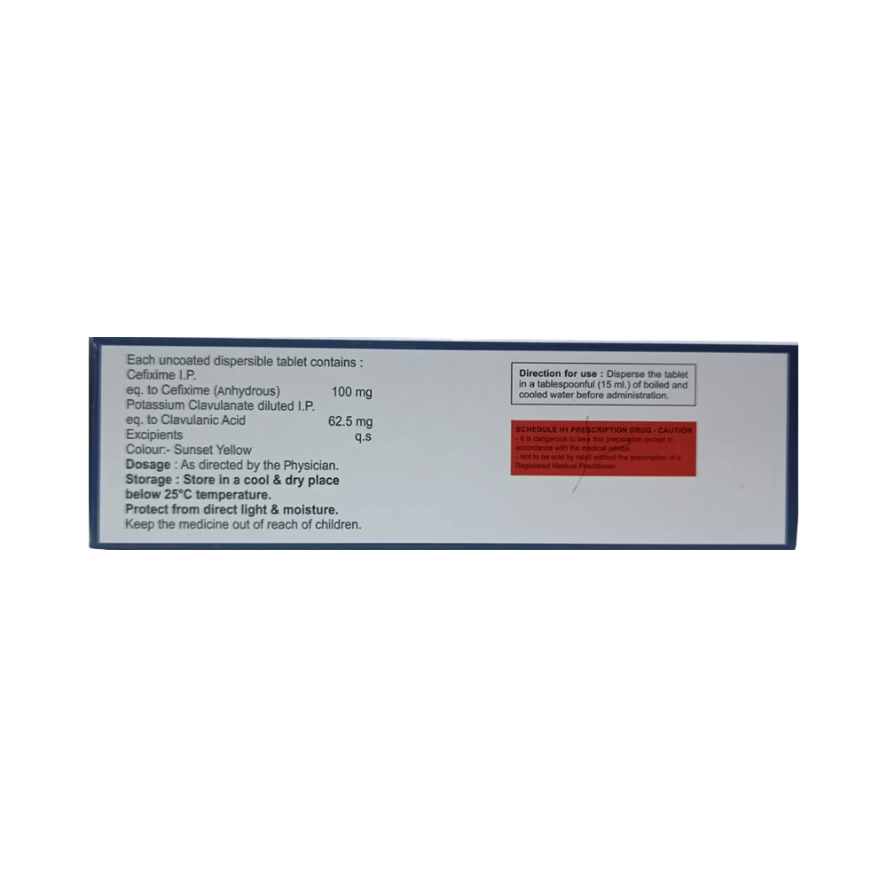 Salt Composition: Cefixime (100mg) + Clavulanic Acid (62.5mg)