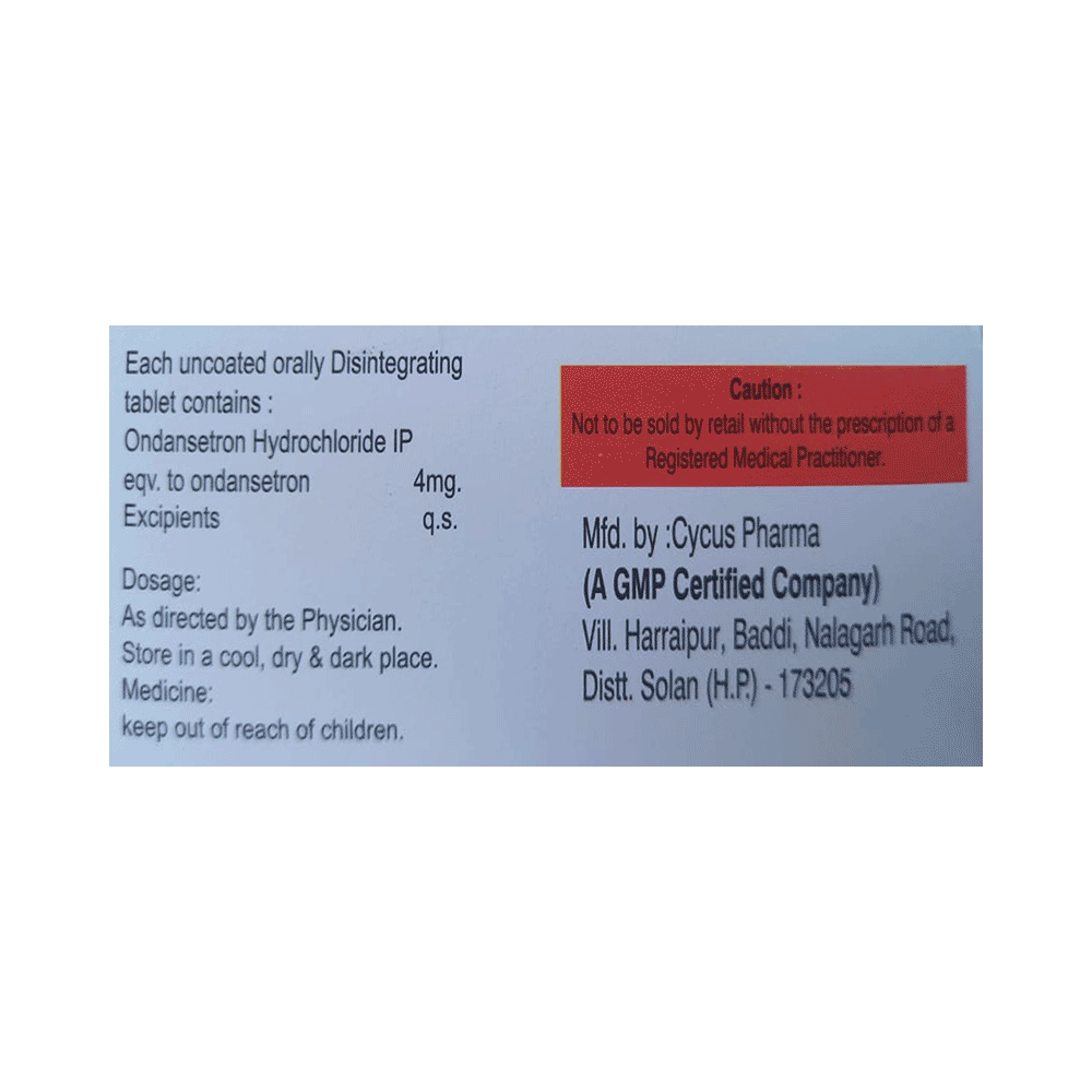 Salt Composition: Ondansetron (4mg)