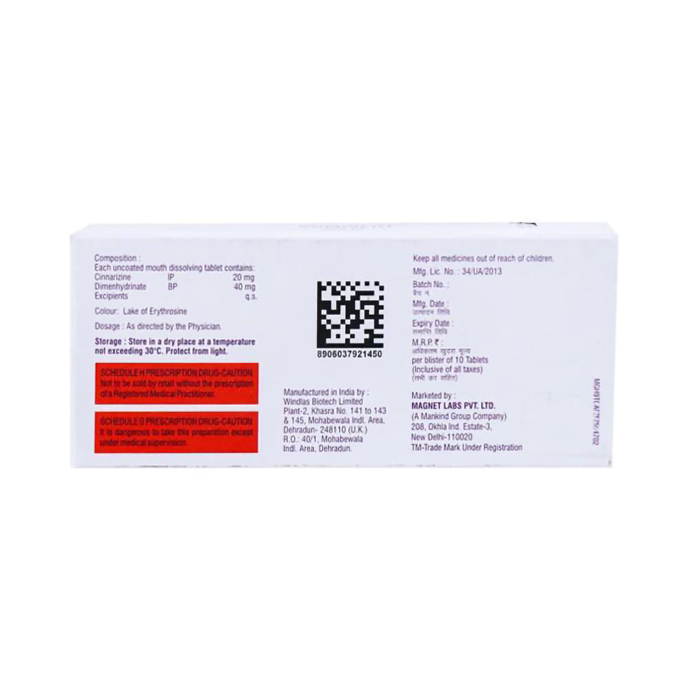 Salt Composition: Cinnarizine (20mg) + Dimenhydrinate (40mg)