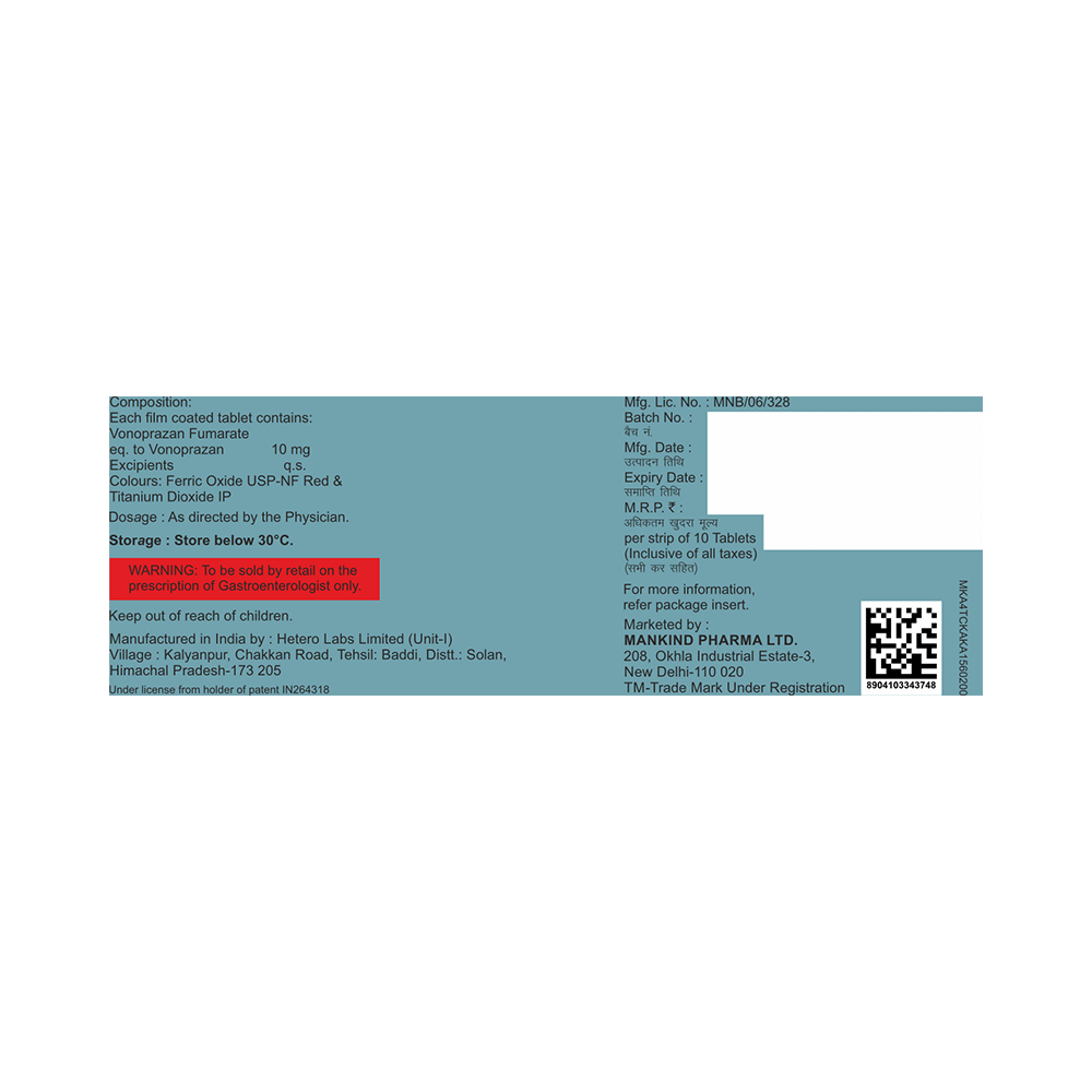 Salt Composition: Vonoprazan (10mg)