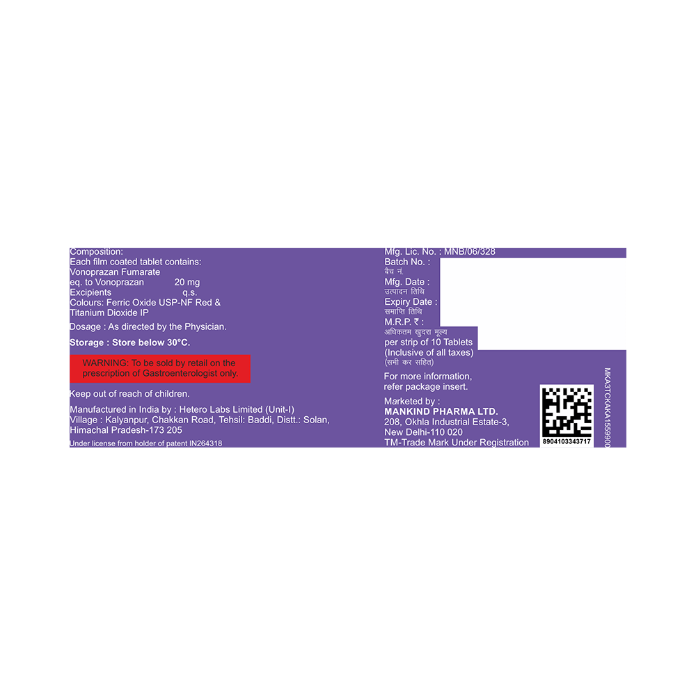 Salt Composition: Vonoprazan (20mg)