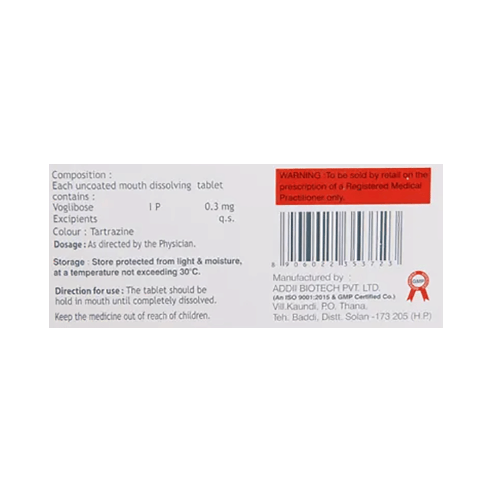 In Type 2 diabetes mellitusVosafe 0.3 Tablet MD is used in managing type 2 diabetes by helping to control post-meal blood sugar spikes. This can lead to better overall glucose management and reduce the risk of long-term complications such as heart disease, kidney damage, and nerve problems. Improved blood sugar stability can also improve daily energy and support a healthier lifestyle.