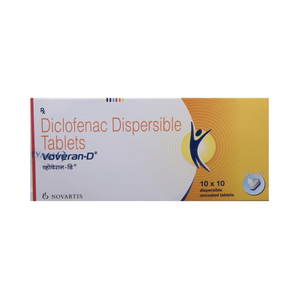 Voveran-D Tablet DT is a pain-relieving medicine. It is used to treat pain, swelling, stiffness, and joint pain in conditions like rheumatoid arthritis, osteoarthritis, and acute musculoskeletal injuries. It is commonly used in back pain, shoulder pain, neck pain, sprains, and spasms. Voveran-D Tablet DT should be taken in the dose and duration as advised by your doctor. It should be taken with food or milk to prevent stomach upset. Inform your doctor if you have any history of heart disease or stroke.The most common side effects of this medicine include nausea, vomiting, diarrhea, abdominal pain, indigestion, flatulence, decreased appetite, headache, and dizziness. Your doctor may also regularly monitor your kidney function, liver function, and levels of blood components if you are taking this medicine for long-term treatment. Long-term use may lead to serious complications such as stomach bleeding and kidney problems.Voveran-D Tablet DT should be used with precaution in patients with asthma and cardiovascular bleeding. This medicine is contraindicated for the treatment of perioperative pain in the setting of coronary artery bypass graft (CABG) surgery. Pregnant and breastfeeding women should consult their doctors before using this medicine as it may cause harmful effects to the developing baby.