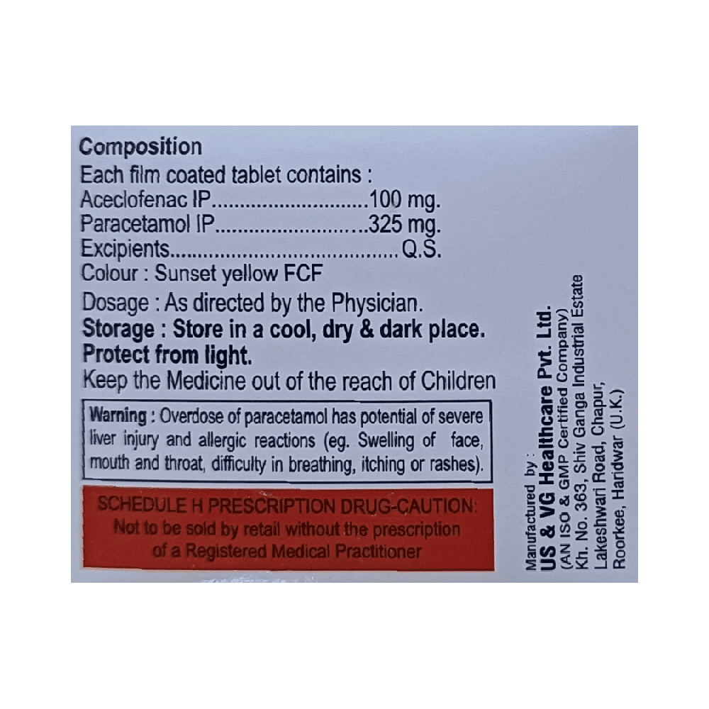 Salt Composition: Aceclofenac (100mg) + Paracetamol (325mg)