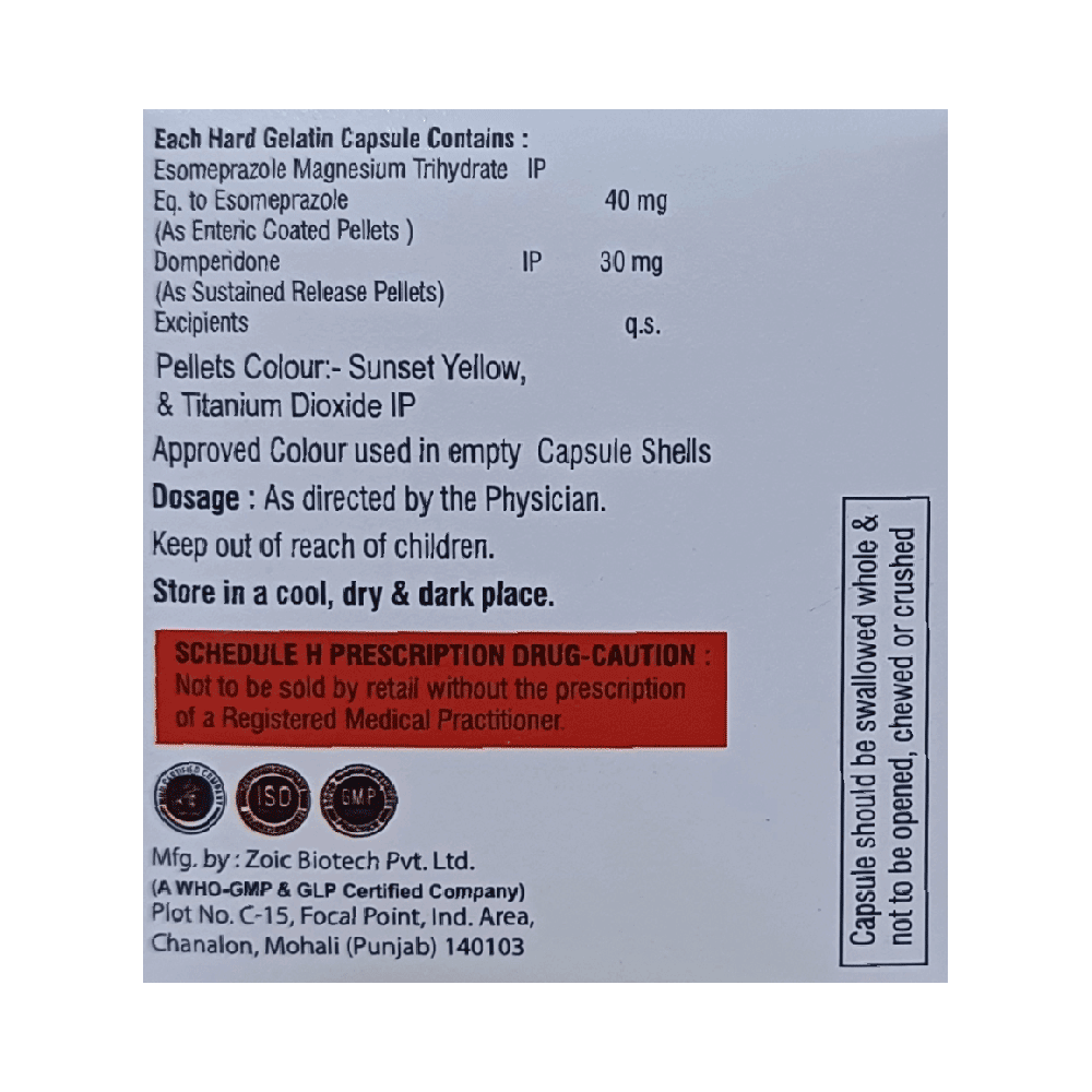 Salt Composition: Domperidone (30mg) + Esomeprazole (40mg)