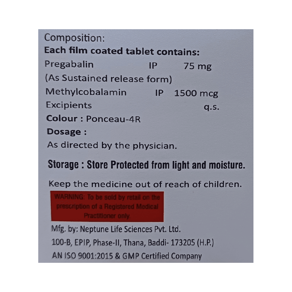 Salt Composition: Methylcobalamin (1500mcg) + Pregabalin (75mg)
