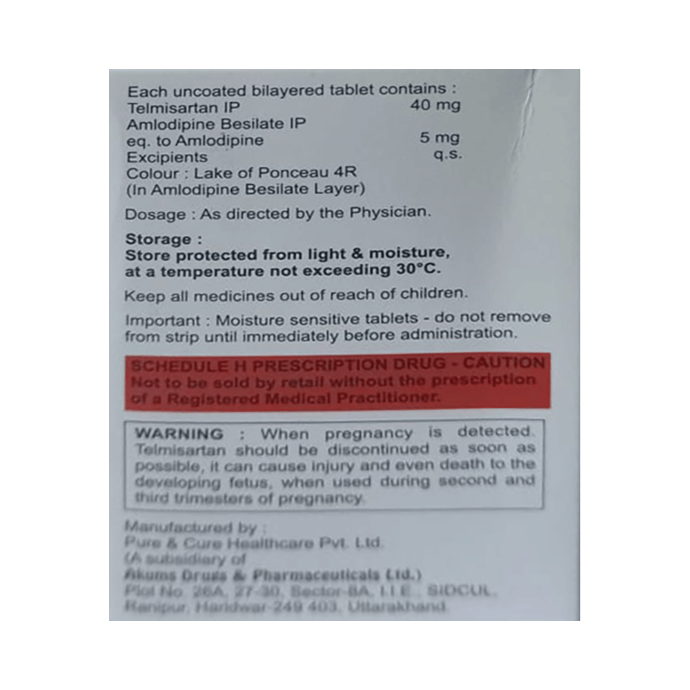 Salt Composition: Telmisartan (40mg) + Amlodipine (5mg)