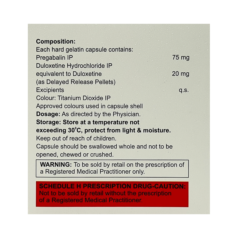 Salt Composition: Pregabalin (75mg) + Duloxetine (20mg)