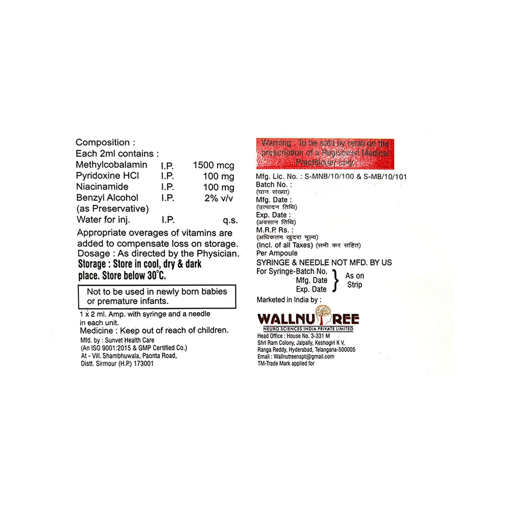 Salt Composition: Methylcobalamin (1500mcg) + Niacinamide (100mg) + Vitamin B6 (Pyridoxine) (100mg)