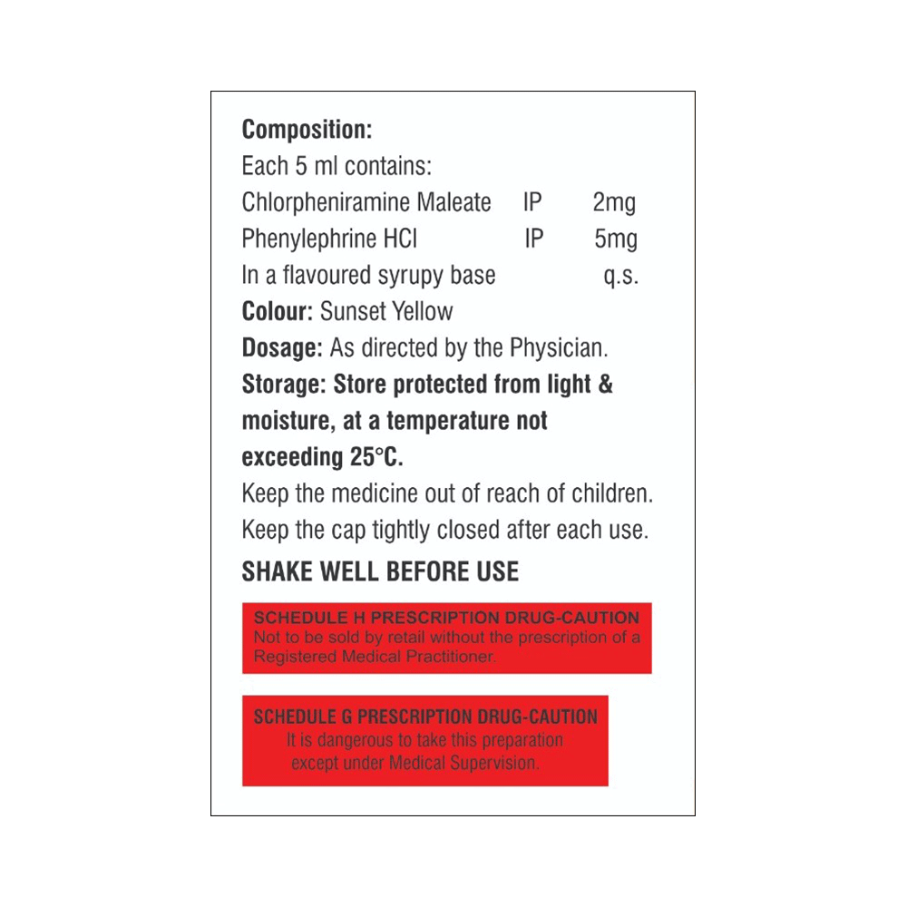 Salt Composition: Chlorpheniramine Maleate (2mg/5ml) + Phenylephrine (5mg/5ml)
