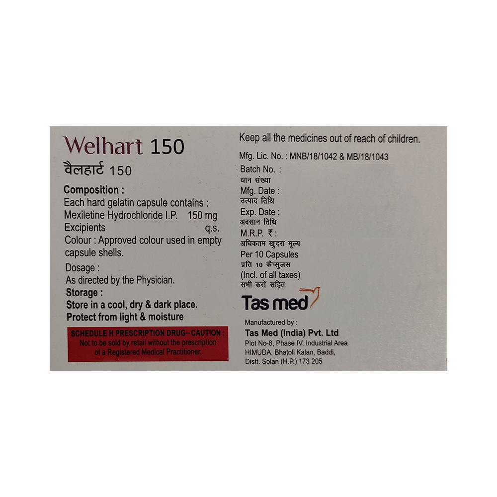 Welhart 150mg Capsule is an anti-arrhythmic medication. It regulates heart beat by blocking abnormal electrical signals in the heart.