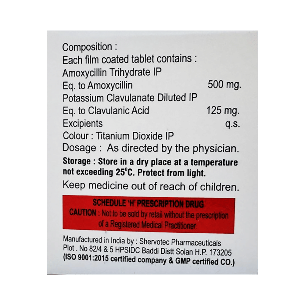 Salt Composition: Amoxycillin (500mg) + Clavulanic Acid (125mg)
