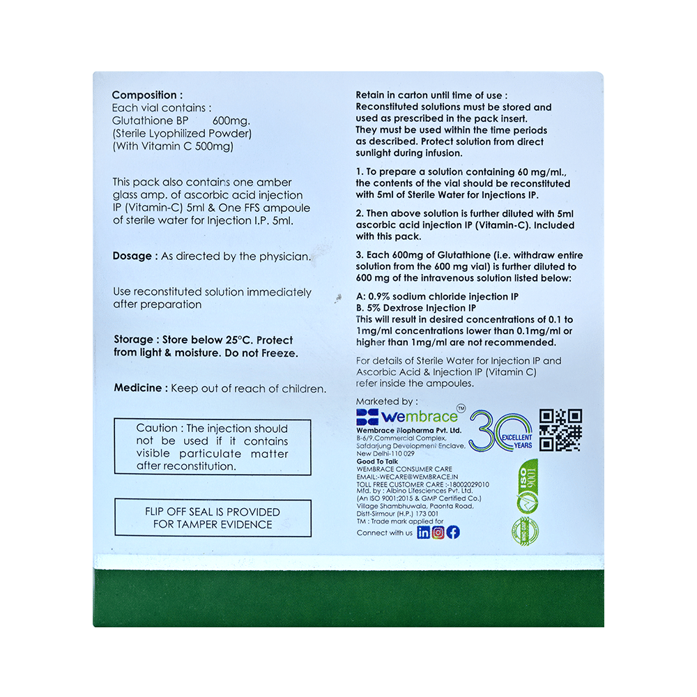Salt Composition: Glutathione (600mg)