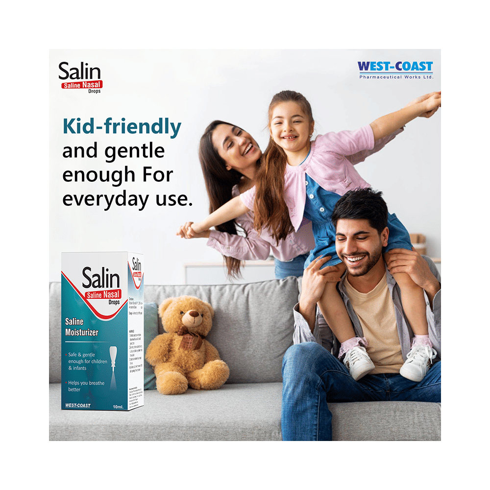 West-Coast Salin Nasal Drops is a purified salt solution. It moisturizes the inner surface of the nose and helps relieve stuffy nose due to common cold or allergies.