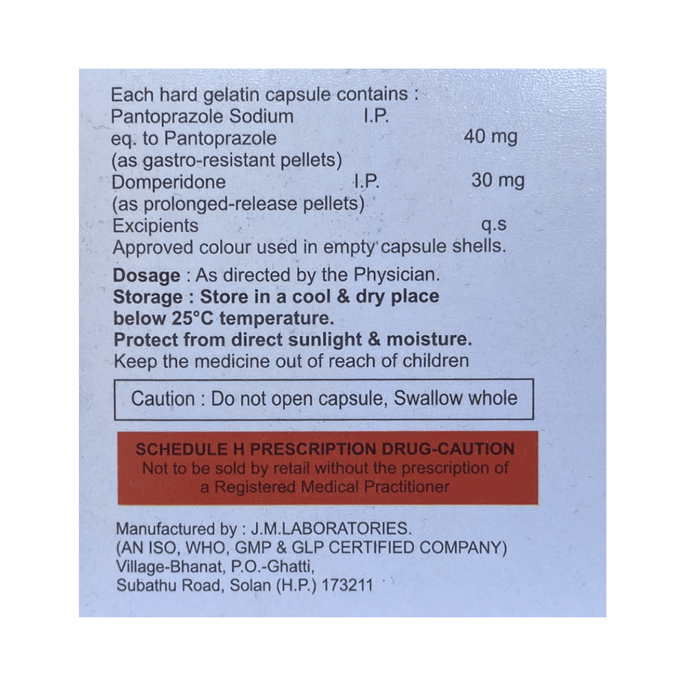 Salt Composition: Domperidone (30mg) + Pantoprazole (40mg)
