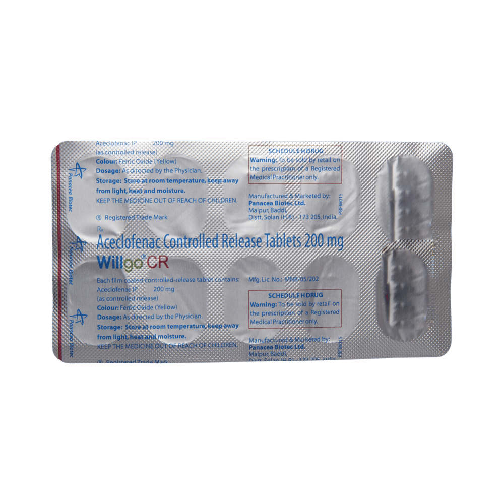 Willgo CR Tablet is a non-steroidal anti-inflammatory drugs (NSAID). It works by blocking the release of certain chemical messengers that cause pain and inflammation (redness and swelling).