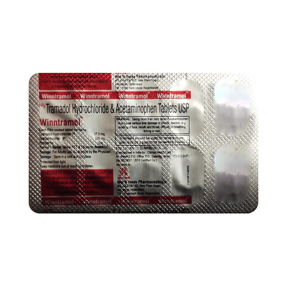 Winntramol Tablet is a combination of two medicines: Tramadol and Paracetamol which relieve severe pain. Tramadol is an opoid analgesic (pain reliever) which works by blocking the transmission of pain signals to the brain to lower pain perception. Paracetamol works by blocking the release of certain chemical messengers that cause pain.