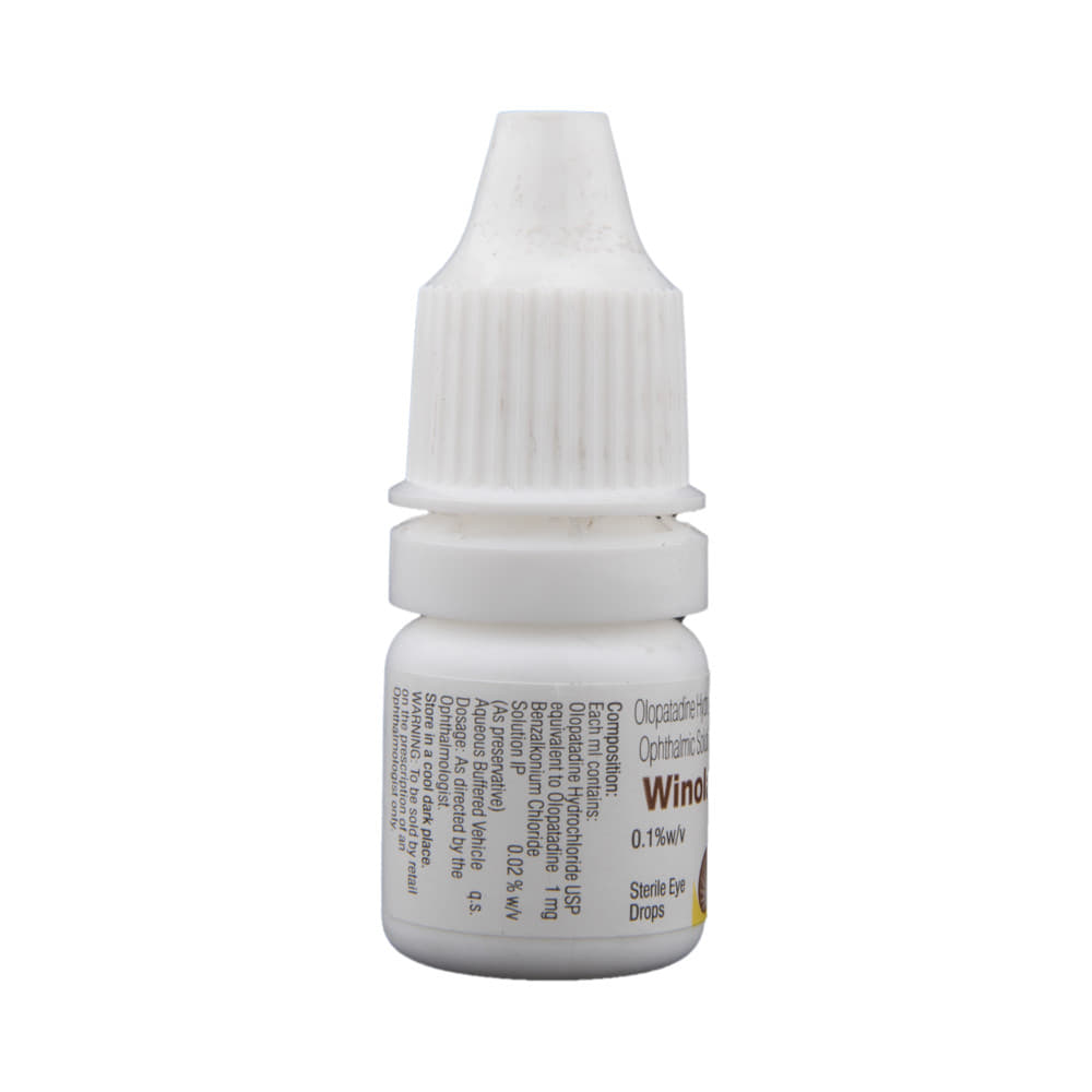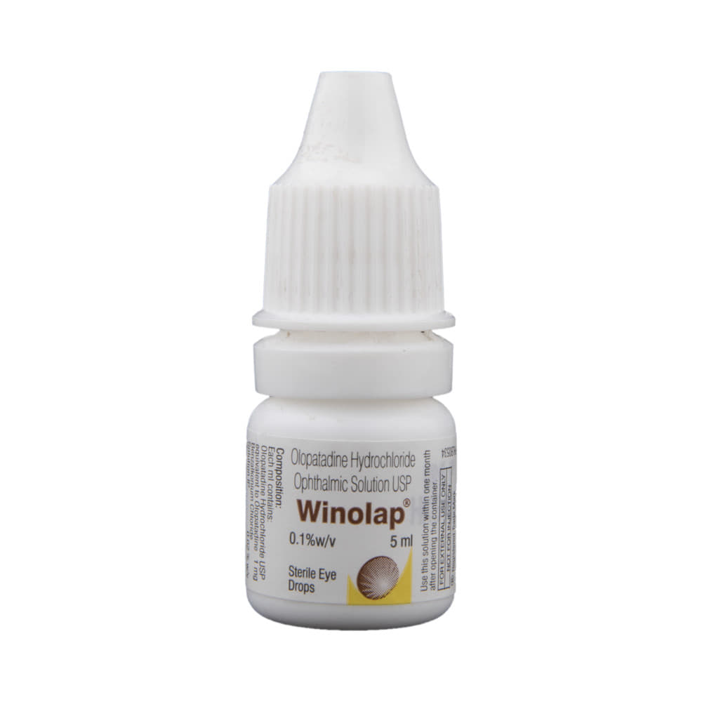 Winolap Eye Drop is a medicine used to treat allergic conjunctivitis, a condition that causes red, itchy, and watery eyes due to allergens. It works by blocking the effects of histamine and preventing the release of chemicals that cause allergic reactions, providing quick and lasting relief. Use Winolap Eye Drop exactly as prescribed by your doctor. Typically, it is applied 1-2 times a day, depending on your condition. Wash your hands before using the drops, tilt your head back, and apply one drop into the affected eye(s). Avoid touching the tip of the dropper to prevent contamination. For the best results, use it regularly and at the same time each day.Some common side effects of Winolap Eye Drop include eye pain, eye irritation, eye discomfort, weakness, and dry mouth. These side effects usually go away on their own after a few minutes. If side effects persist or worsen, or if you experience more severe reactions like swelling, severe itching, or rash, contact your doctor immediately. To prevent side effects, avoid using more drops than prescribed and follow the instructions carefully.While using Winolap Eye Drop, avoid driving or using machinery immediately after application if you experience blurred vision. If you wear contact lenses, remove them before applying the drops and wait at least 15 minutes before putting them back in. Do not use the drops if you are allergic to the medicine or any of its ingredients. Inform your doctor if you are pregnant, breastfeeding, or using any other medications to avoid potential interactions.
