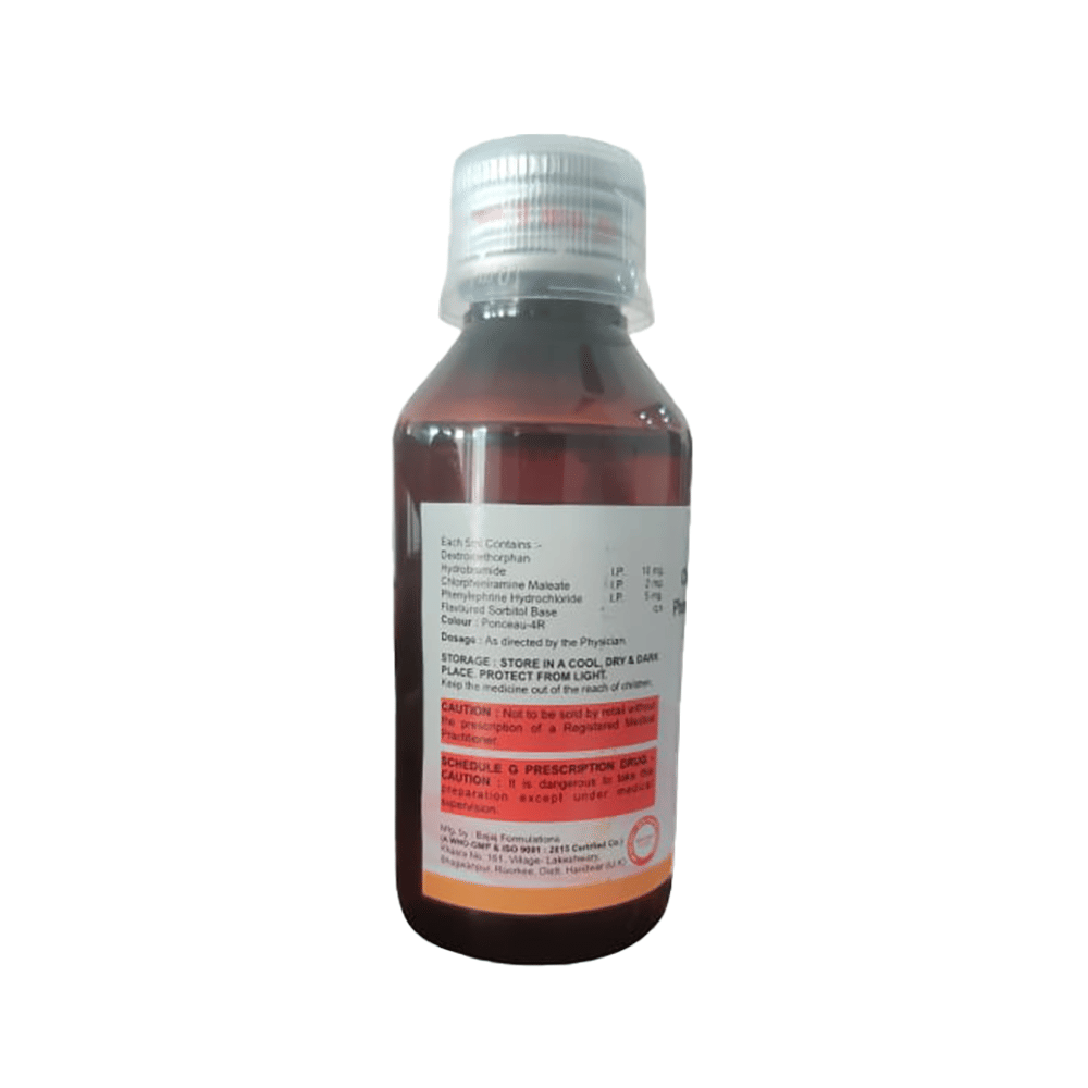 Salt Composition: Phenylephrine (5mg/5ml) + Chlorpheniramine Maleate (2mg/5ml) + Dextromethorphan Hydrobromide (10mg/5ml)