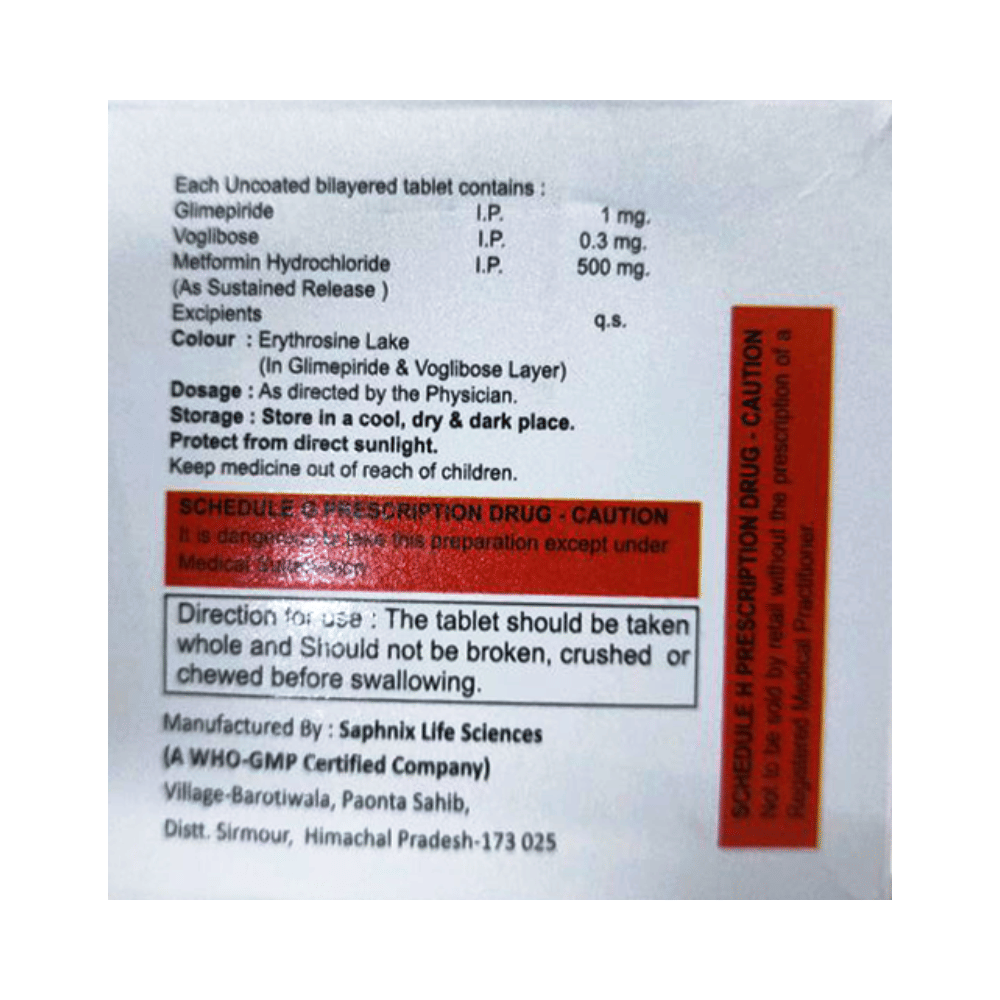 Salt Composition: Glimepiride (1mg) + Metformin (500mg) + Voglibose (0.3mg)