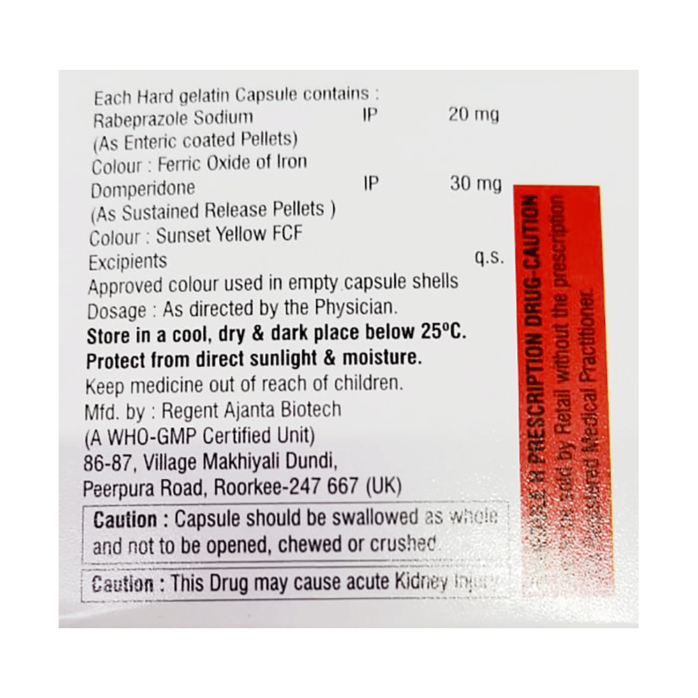 Salt Composition: Domperidone (30mg) + Rabeprazole (20mg)