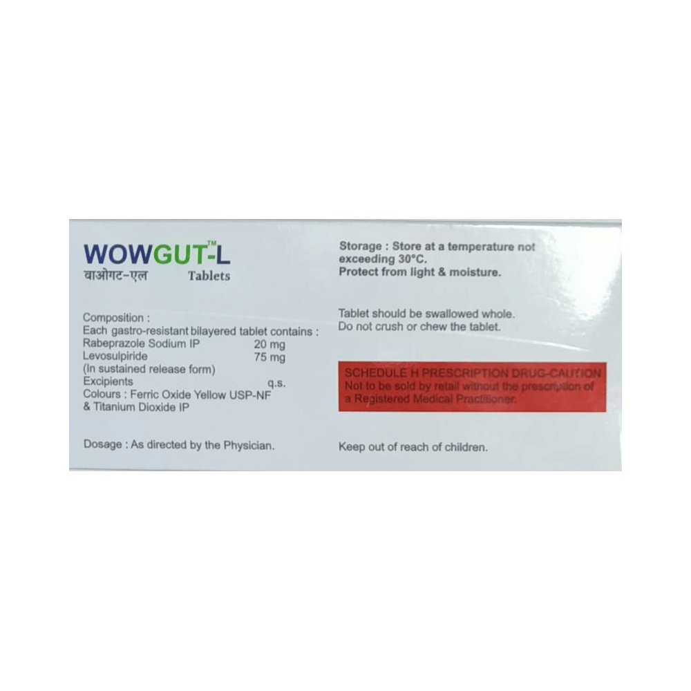 In Treatment of Intestinal ulcersIntestinal ulcers are painful sores that develop in the inner lining of the stomach or gut (intestine). Wowgut-L Tablet SR reduces the amount of acid your stomach makes which prevents further damage to the ulcer as it heals naturally. You may be given other medicines along with this medicine depending on what caused the ulcer. You need to keep taking Wowgut-L Tablet SR as prescribed by the doctor for it to be effective, even if the symptoms seem to disappear.In Treatment of Irritable bowel syndromeIrritable bowel syndrome is a chronic (long-term) inflammatory disease of the large intestine (colon) that usually needs long term management. This can lead to bleeding, frequent diarrhea, bloating, flatulence, cramps and stomach pain. Wowgut-L Tablet SR relaxes the muscles in your stomach and gut (intestine) and relieves these symptoms effectively. Usually, it is used along with other medicines for management of your condition. Continue taking it for as long as the doctor may advise you to. You need to take this medicine regularly to get the most out of it. Take a fiber-rich diet, avoid oily or spicy food and drink plenty of fluids while taking it to make sure you stay hydrated.In Treatment of Gastroesophageal reflux disease (Acid reflux)Gastroesophageal reflux disease (GERD) is a chronic (long-term) condition in which there is an excess production of acid in the stomach. Wowgut-L Tablet SR reduces the amount of acid your stomach makes and relieves the pain associated with heartburn and acid reflux. You should take it exactly as it is prescribed for it to be effective.Some simple lifestyle changes can help reduce the symptoms of GERD. Think about what foods trigger heartburn and try to avoid them; eat smaller, more frequent meals; try to lose weight if you are overweight and try to find ways to relax. Do not eat within 3-4 hours of going to bed.show moreshow less