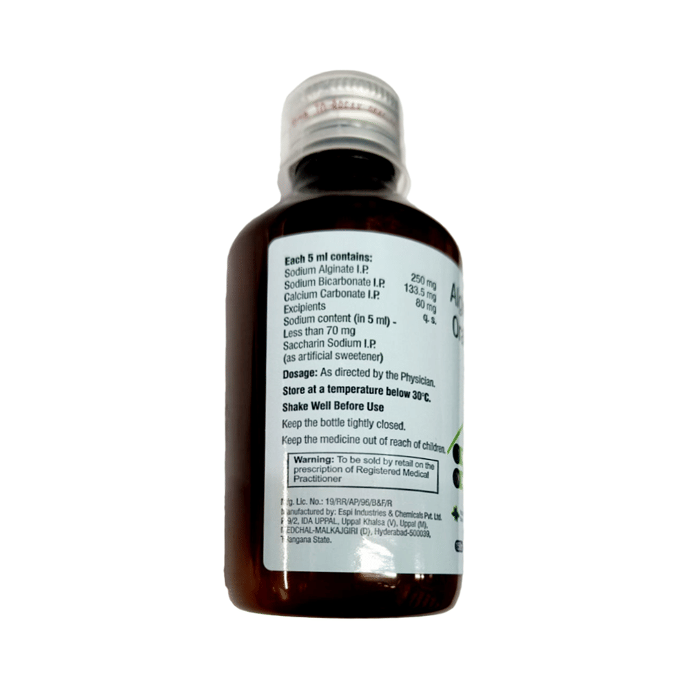 Salt Composition: Calcium Carbonate (80mg/5ml) + Sodium Alginate (250mg/5ml) + Sodium Bicarbonate (133.5mg/5ml)