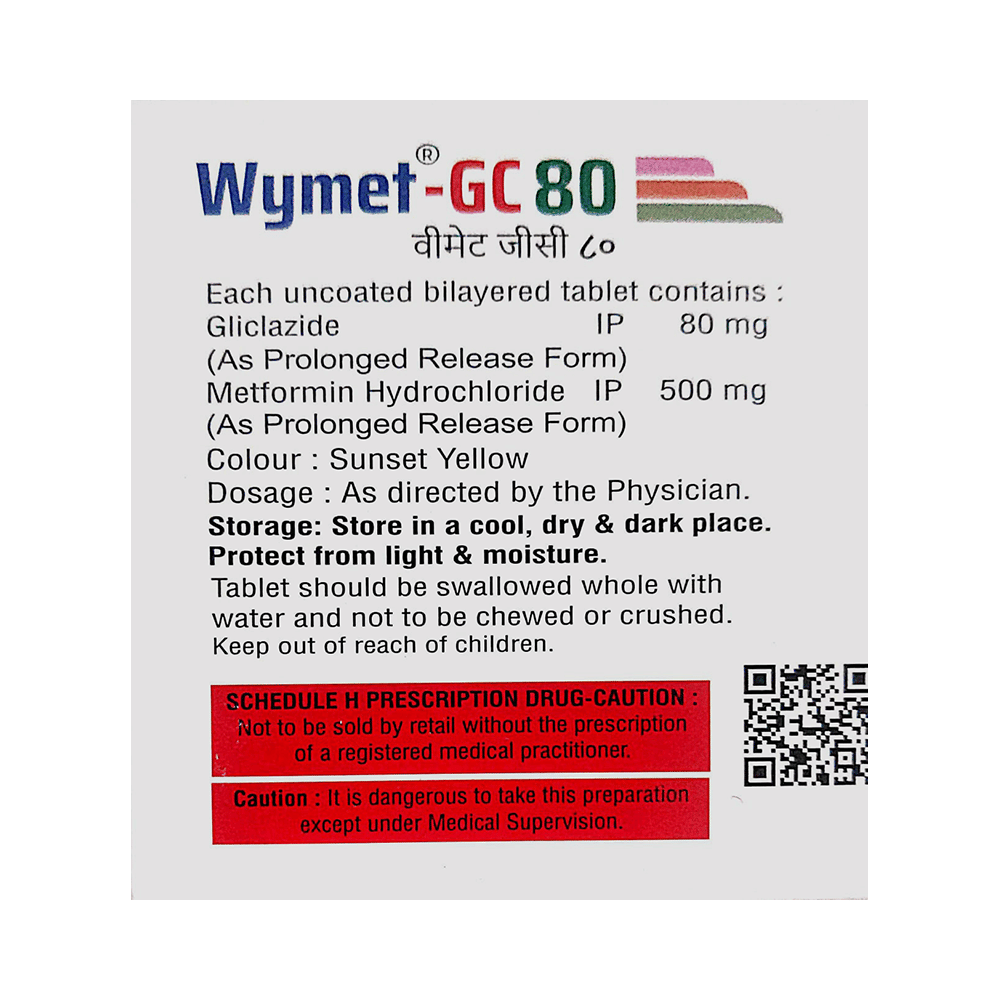 Wymet-GC 80 Tablet PR is a combination of two antidiabetic medicines: Gliclazide and Metformin.