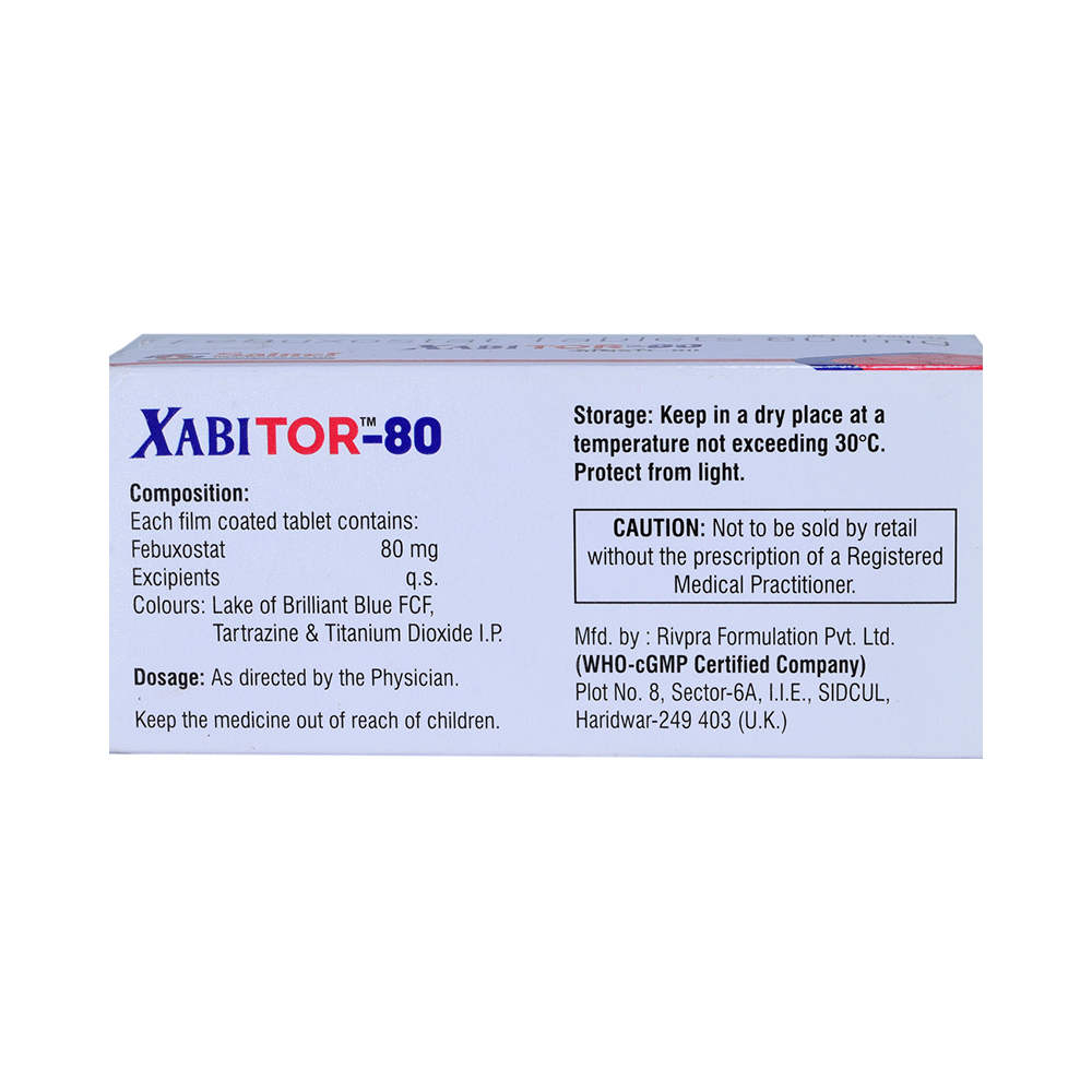 Xabitor 80 Tablet is a xanthine oxidase inhibitor. It works by decreasing blood uric acid, which is the chemical that causes gout.
