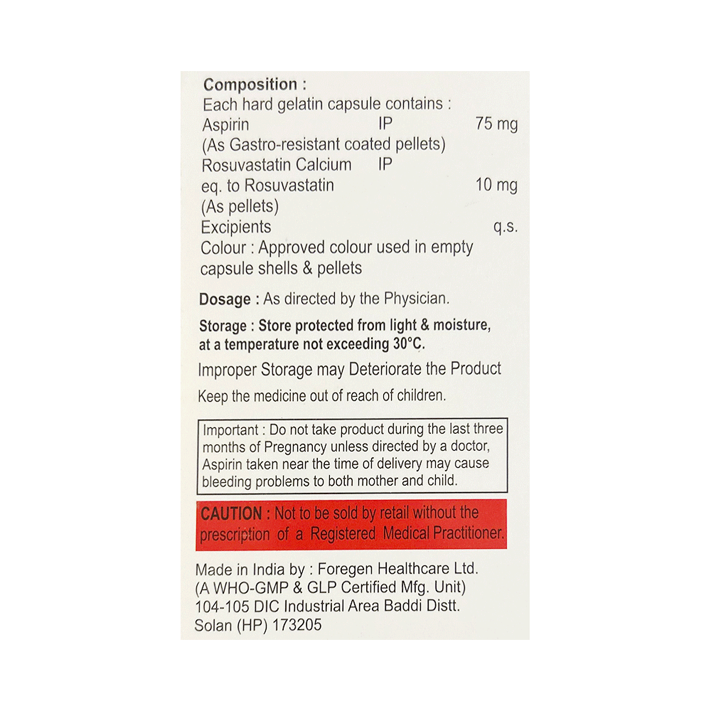 Salt Composition: Rosuvastatin (10mg) + Aspirin (75mg)