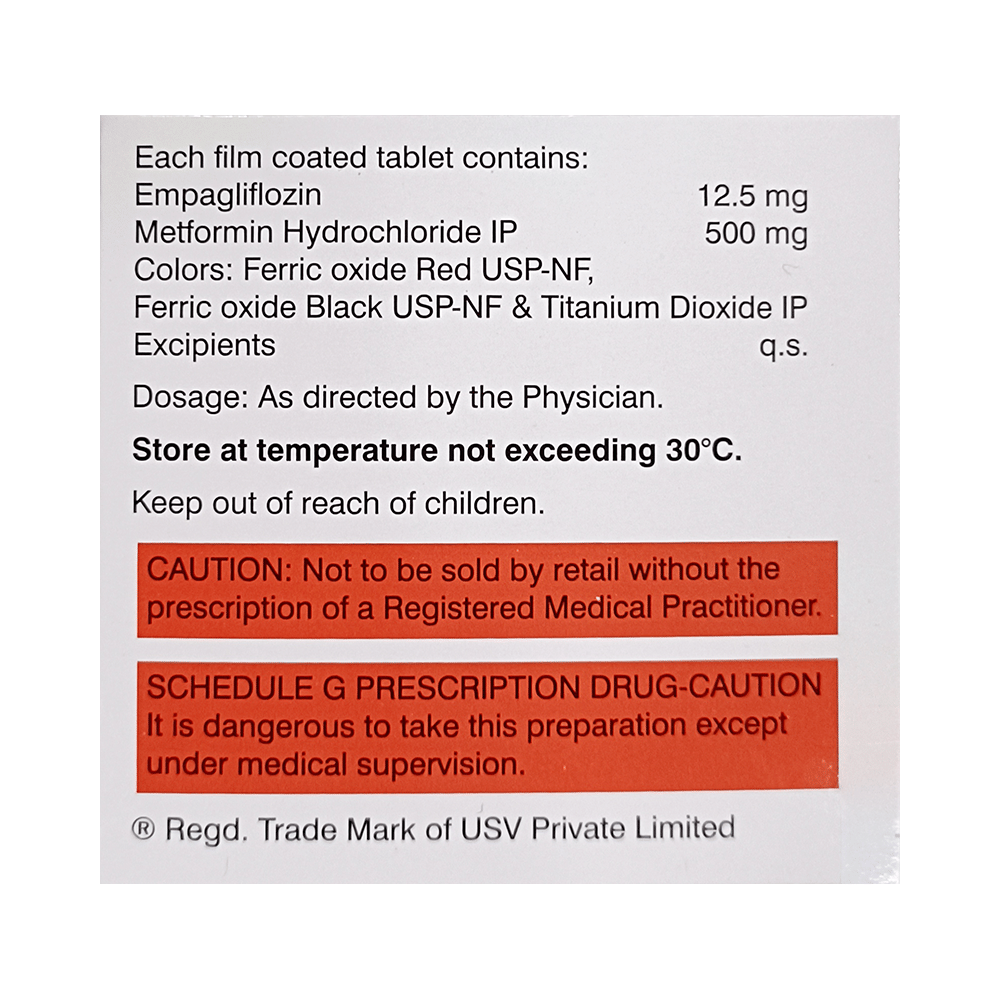 Salt Composition: Empagliflozin (12.5mg) + Metformin (500mg)
