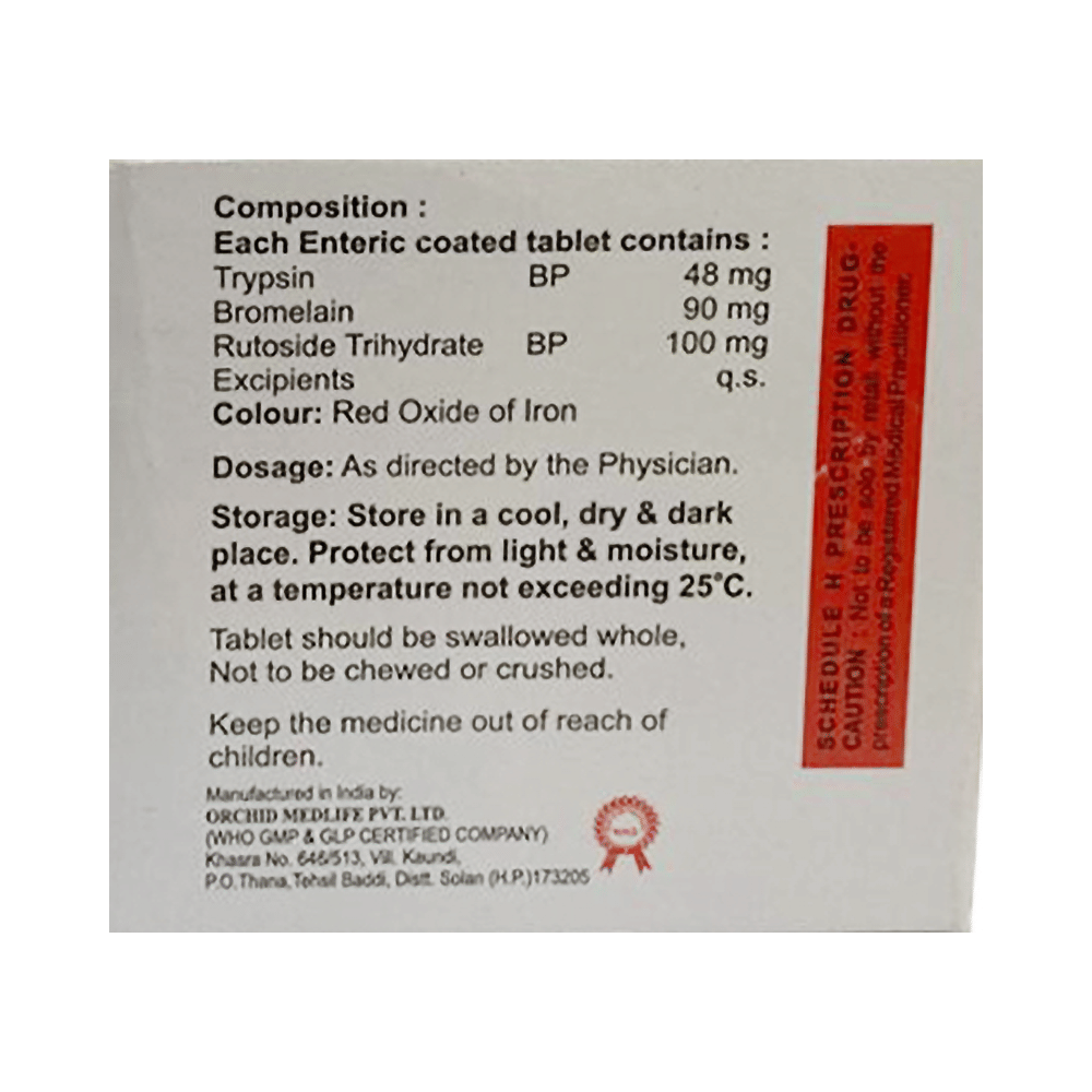 Salt Composition: Bromelain (90mg) + Trypsin (48mg) + Rutoside (100mg)