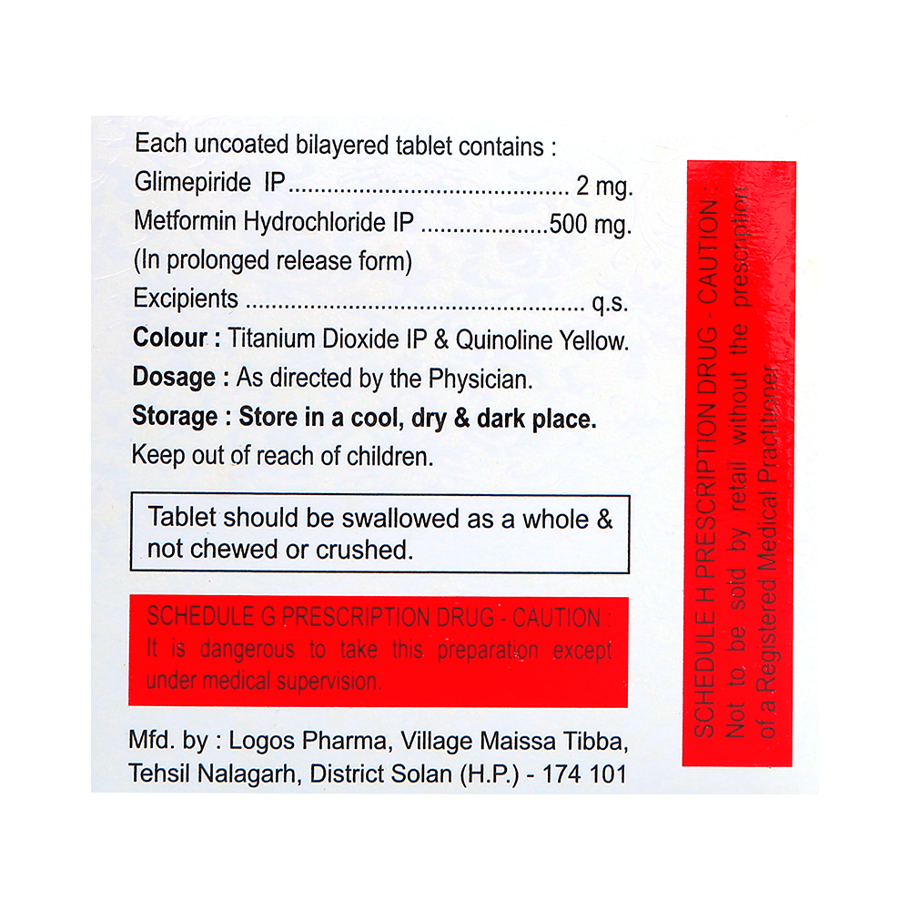 Salt Composition: Glimepiride (2mg) + Metformin (500mg)