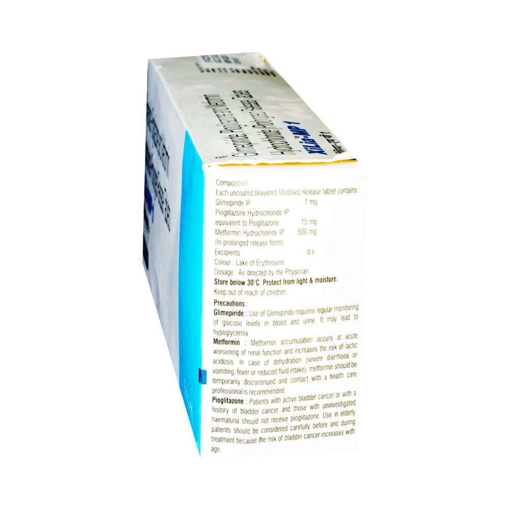 Salt Composition: Glimepiride (1mg) + Metformin (500mg) + Pioglitazone (15mg)