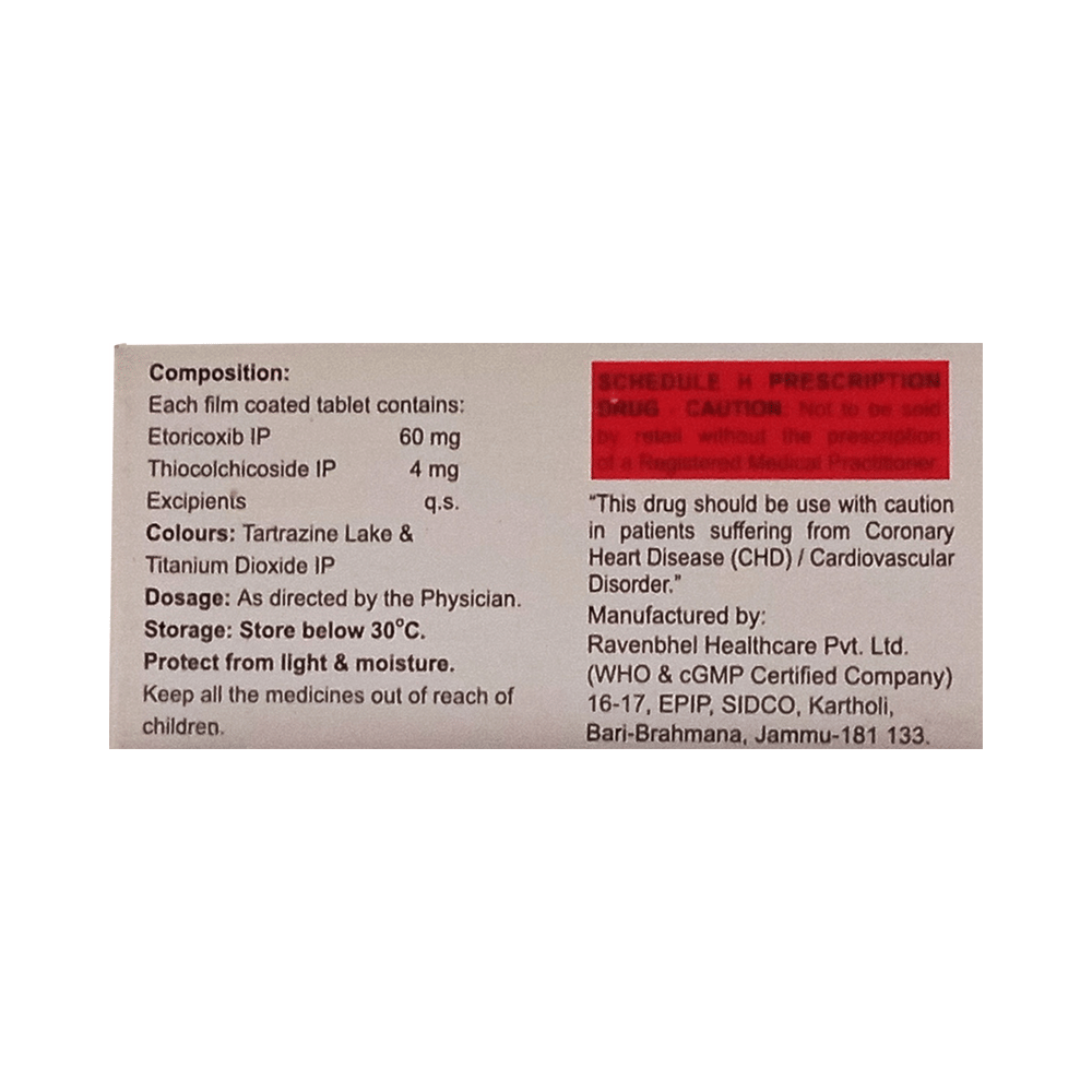 Salt Composition: Etoricoxib (60mg) + Thiocolchicoside (4mg)