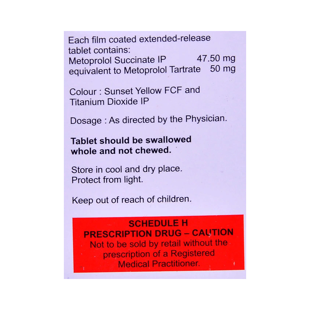 Salt Composition: Metoprolol Tartrate (50mg)