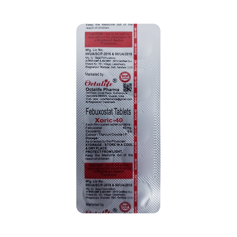 Xoric 40 Tablet is a xanthine oxidase inhibitor. It works by decreasing blood uric acid, which is the chemical that causes gout.