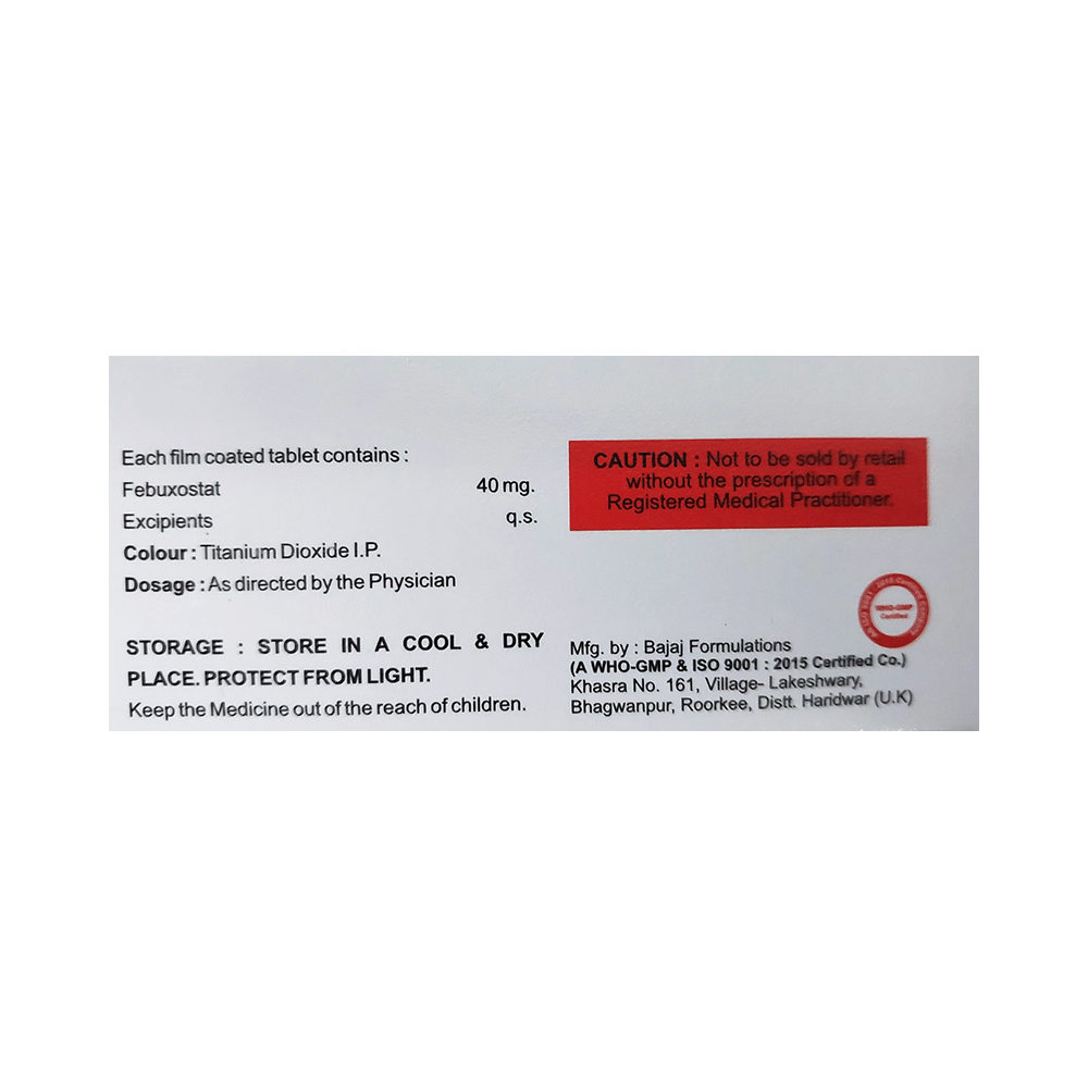 Salt Composition: Febuxostat (40mg)